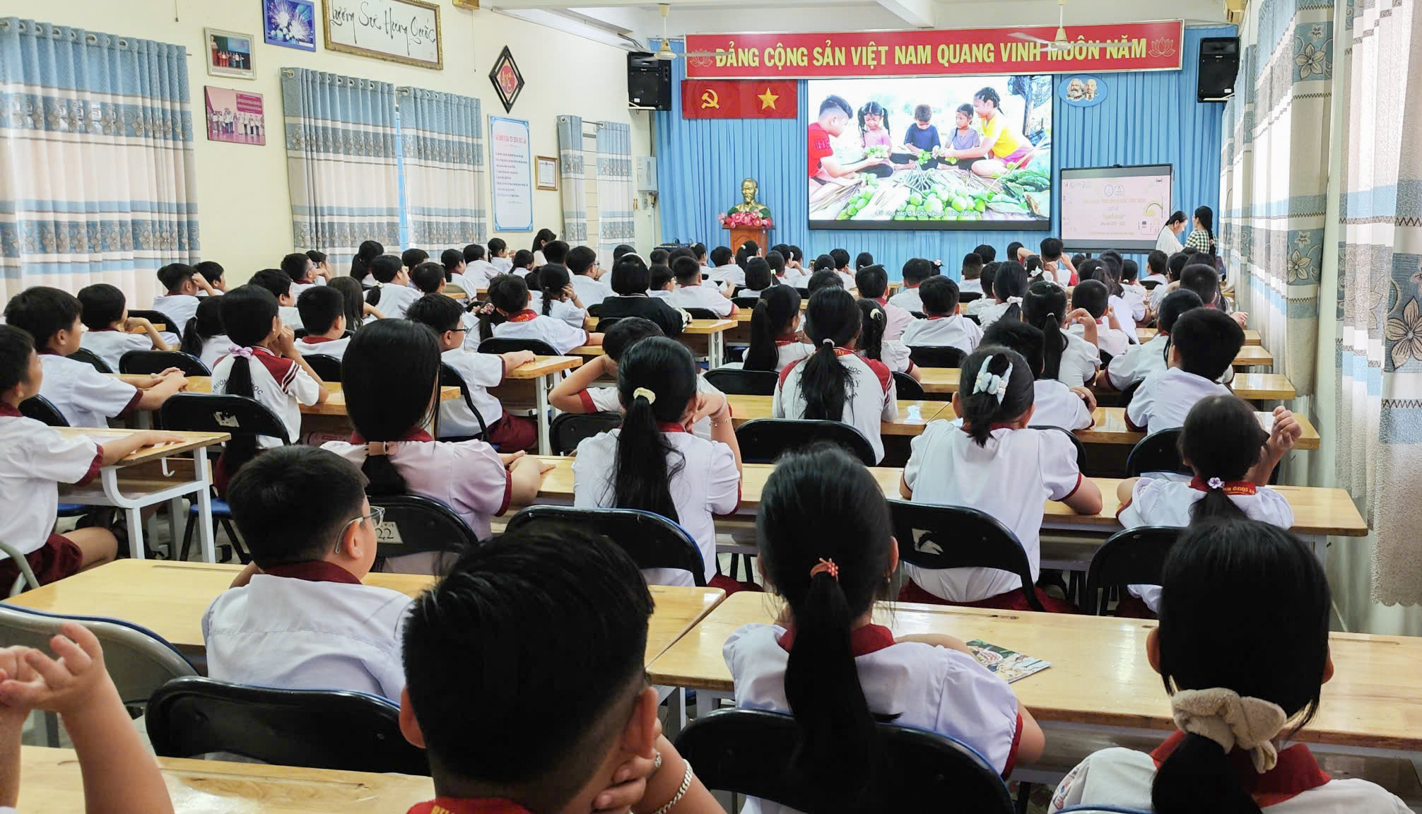Các em học sinh tại An Giang tham gia hoạt động trải nghiệm khi xem phim “Tôi là nước” (Ảnh: CTMT)